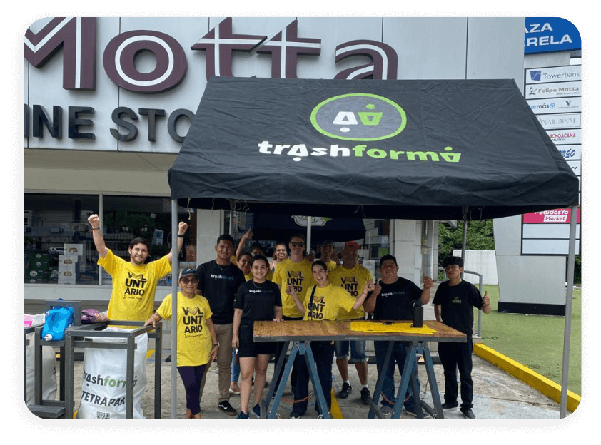 Como parte de nuestra Alianza con Trashforma, hemos ubicado puntos limpios fuera de varias de nuestras sucursales. Organizamos el “auto trash” en estos puntos para que nuestros clientes puedan traer sus materiales reciclables cómodamente desde sus carros sin necesidad de bajarse del carro. Nuestros voluntarios apoyan esta actividad para dar la mejor atención posible a los participantes.